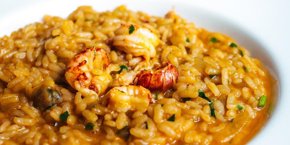 Στα μέσα του μαγειρέματος, ρίχνετε τις καραβίδες και 5-6 δαγκάνες για την γεύση (και το ντεκόρ). Στο τελευταίο συμπλήρωμα ζωμού, ρίχνετε το υπόλοιπο βούτυρο, το τυρί και ανακατεύετε καλά. Σβήνετε το μάτι της κουζίνας και σκεπάζετε το τηγάνι. Αφήνετε το ριζότο για 15 λεπτά να «ξεκουραστεί».