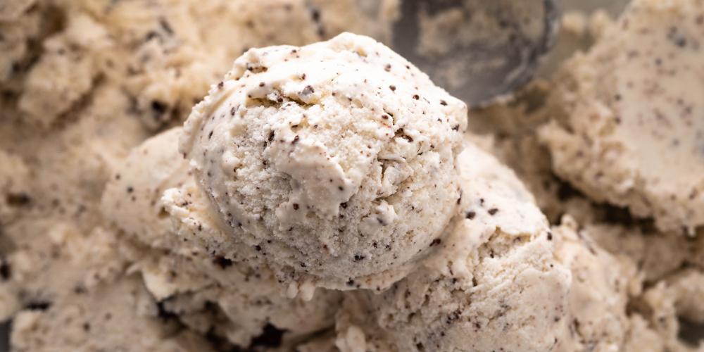 Αποσύρετε από τη φωτιά και προσθέτετε τη βανίλια. Αφήνετε το μίγμα να κρυώσει. Χτυπάτε στο μίξερ την κρέμα γάλακτος σε σαντιγί, προσθέτετε το μίγμα των αβγών που έχει κρυώσει τελείως και ανακατεύετε. Ρίχνετε τις νιφάδες. Βάζετε το μίγμα στην κατάψυξη και το χτυπάτε 4 φορές ανά 1-1,5 ώρα. Στο τελευταίο χτύπημα το αδειάζετε σε ένα μπολ ανοξείδωτο, βάζετε μεμβράνη να ακουμπάει στο παγωτό και το τοποθετείτε στην κατάψυξη.