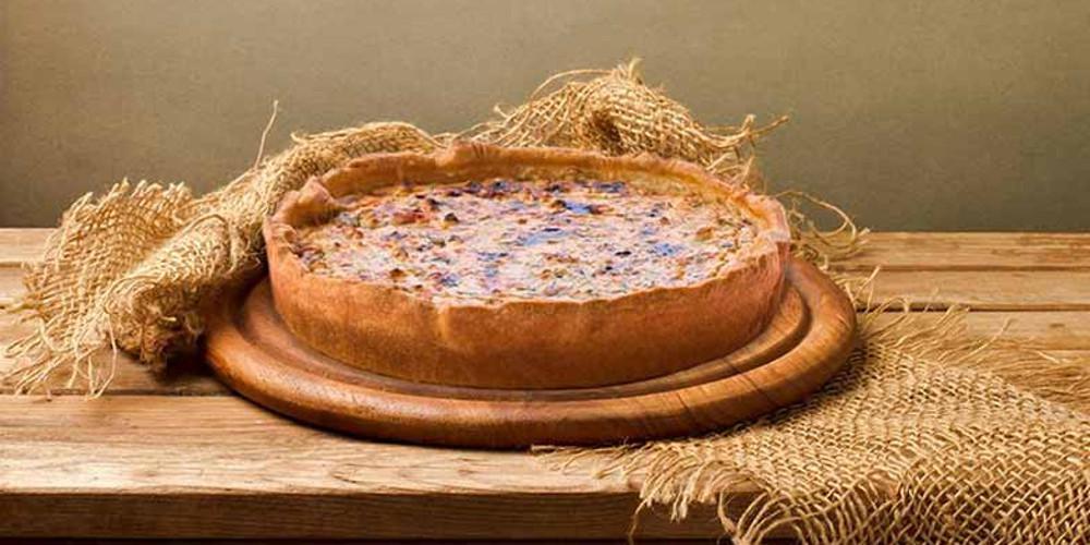 Λαδώνετε μια ταρτιέρα 26cm και απλώνετε το φύλλο σφολιάτας φροντίζοντας να καλύψετε τόσο τον πάτο, όσο και τα τοιχώματα του σκεύους. Με ένα πιρούνι τρυπάτε τον πάτο της σφολιάτας. Ρίχνετε τη γέμιση μέσα στην ταρτιέρα και ψήνετε την τάρτα στον προθερμασμένο φούρνο για 40 λεπτά.