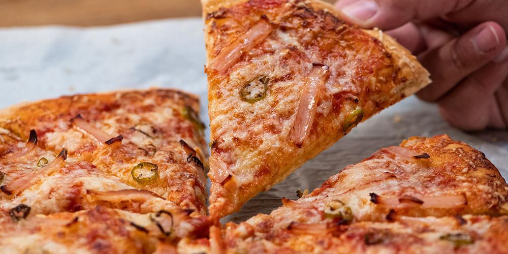 Καλύπτετε απλώνοντας σάλτσα ντομάτας, τρίβετε γραβιέρα Νάξου και απλώνετε το αλλαντικό της επιλογής σας. Τέλος γαρνίρετε από πάνω ψιλοκομμένη πράσινη πιπερίτσα. Μεταφέρετε τη λαμαρίνα σε προθερμασμένο φούρνο στους 210 και ψήνετε για περίπου 25 λεπτά.
