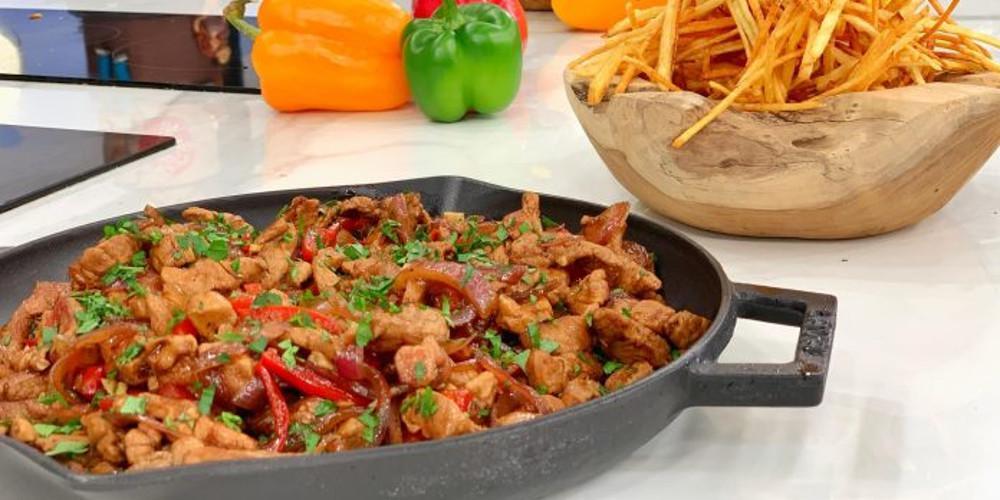 Κόβετε το κρεμμύδι στη μέση και μετά σε λεπτές φέτες, τις πιπεριές στη μέση οριζόντια, καθαρίζετε τα σπόρια και μετά σε μπαστουνάκια όπως το ψαρονέφρι. Όταν σοταριστεί και θωρακιστεί (αν δεν έχετε μεγάλο τηγάνι να το βάλετε σε 2 δόσεις) προσθέτετε το κρεμμύδι, τις πιπεριές και το ψιλοκομμένο σκόρδο. Σοτάρετε καλά μέχρι να μαλακώσουν τα λαχανικά σας. Προσθέτετε την μαύρη μπύρα και αφήνετε για 2 λεπτά.