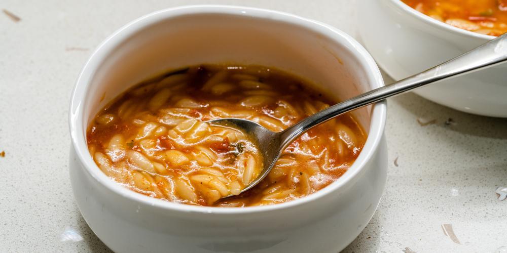Οταν ξαναβράσει η σάλτσα, προσθέτετε το κριθαράκι και αλατοπιπερώνετε. Χαμηλώνετε τη φωτιά και βράζετε το φαγητό για 10-15 λεπτά ή μέχρι να μαλακώσει το κριθαράκι.
