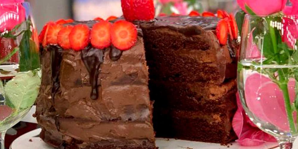 Ό,τι μας έχει μείνει από την αφράτη γκανάζ, την αλείφετε γύρω γύρω από το κέικ για να το σταθεροποιήσετε και κάνετε και μερικές ροζέτες με έναν κορνέ στην κορυφή του κέικ. Βάζετε γύρω γύρω γκανάζ σοκολάτας, δημιουργώντας δάκρυα να τρέχουν απ’ την κορυφή έως κάτω. Βάζετε στο ψυγείο για τουλάχιστον 2 ώρες, έπειτα σερβίρετε.