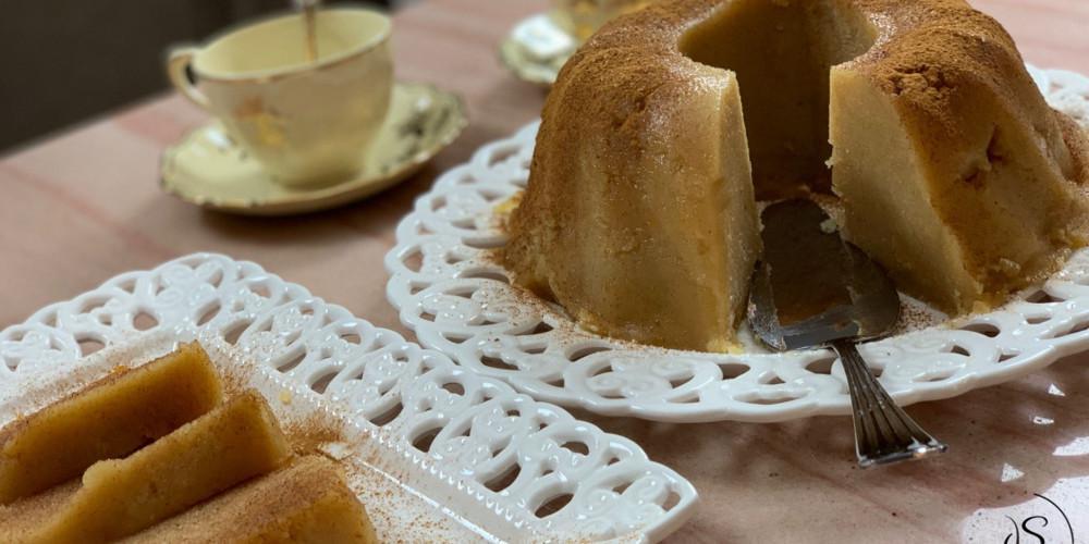 Το βάζετε σε μια στρογγυλή φόρμα με τρύπα στο κέντρο και, όταν κρυώσει, το αναποδογυρίζετε σε μια στρογγυλή πιατέλα και το πασπαλίζετε με ζάχαρη άχνη και κανέλα.