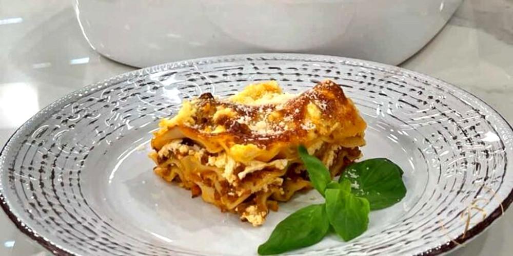 Συναρμολόγηση: Απλώστε ομοιόμορφα 2 φλιτζάνια σάλτσα σε ένα ταψί ή πυρέξ. Τοποθετήστε φύλλα από λαζάνια πάνω από την σάλτσα. Απλώστε 2 φλιτζάνια μείγμα τυριού πάνω από τα λαζάνια. Επαναλάβετε εναλλάξ, τυριά, λαζάνια, κιμά δύο φορές ακόμα. Απλώστε ομοιόμορφα 2 φλιτζάνια σάλτσα πάνω από το πάνω στρώμα των ζυμαρικών. Πασπαλίστε ομοιόμορφα την υπόλοιπη μοτσαρέλα και την υπόλοιπη παρμεζάνα.