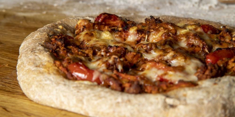 Σοτάρετε σε ένα αντικολλητικό τηγάνι το κιμά, τα καρότα, τα κολοκύθια και τα μπαχαρικά ,μέχρι να απορροφήσουν τα υγρά τους και προσθέστε την barbeque sauce. Διαλύστε την μαγιά με την ζάχαρη σε χλιαρό νερό. Ανακατέψτε σε ένα μπολ το πολύσπορο αλεύρι, το λευκό αλεύρι, το αλάτι και προσθέστε το νερό με την μαγιά. Ζυμώστε ώστε να μην κολλάει στα χέρια προσθέτοντας αν χρειαστεί λίγο αλεύρι ή νερό.