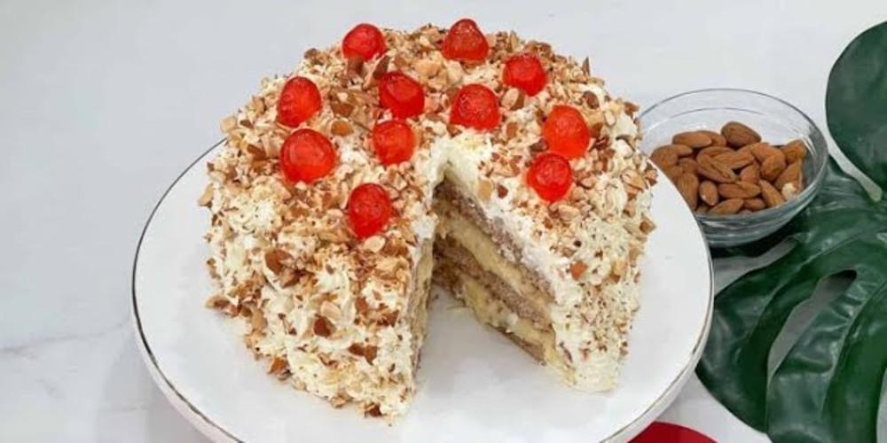 Γαρνίρετε την τούρτα σας με καβουρδισμένο αμύγδαλο.