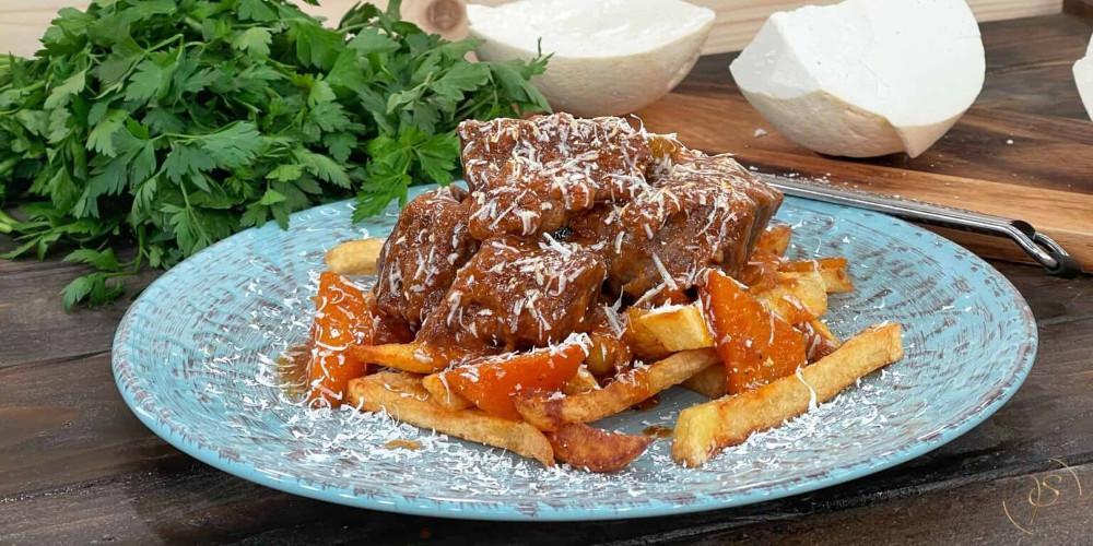 Για τις τηγανητές πατάτες: Ξεφλουδίζετε και κόβετε τις πατάτες πρώτα σε φέτες και μετά σε
