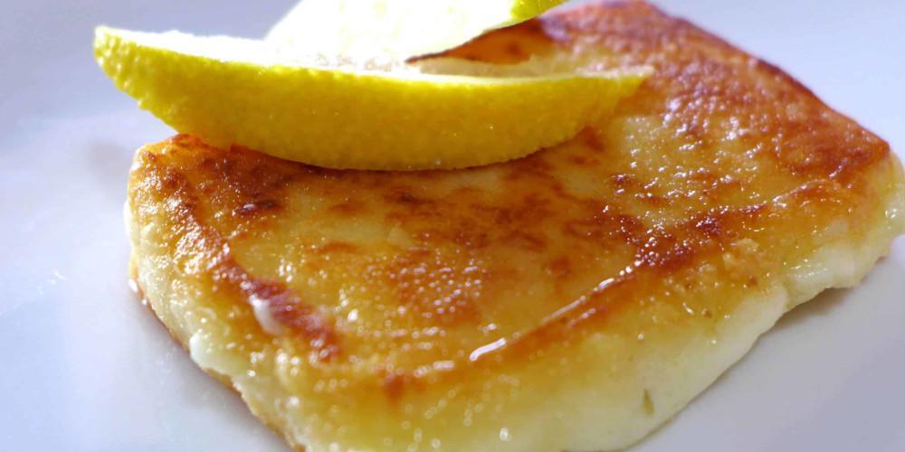 Κόβετε τη φέτα σε κομμάτια πάχους 1-1,50 εκ. (διαφορετικά θα λιώσει στο τηγάνι). Βρέχετε με νερό τα κομμάτια και μετά αλευρώνετε. Σε ένα μικρό τηγάνι, βάζετε λίγο ελαιόλαδο και το αφήνετε να κάψει. Μόλις κάψει, βάζετε το κομμάτι του τυριού και τηγανίζετε για λίγο και από τις δύο μεριές μέχρι να ροδίσει. Βγάζετε με μια σπάτουλα, στεγνώνετε λίγο σε χαρτί κουζίνας και το σερβίρετε όσο είναι ζεστό, στάζοντας από πάνω λίγο λεμονάκι.