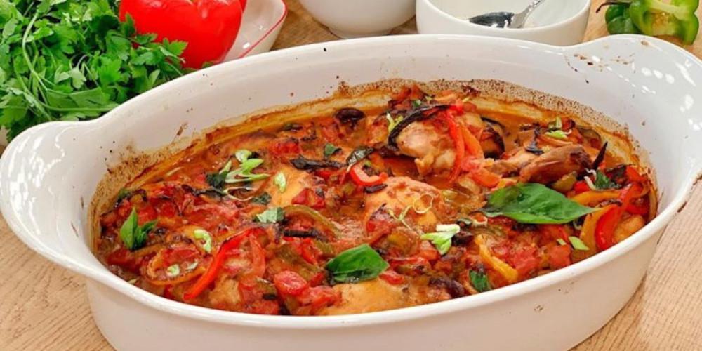 Αλατοπιπερώνουμε τα μπούτια κοτόπουλου και τα αλευρώνουμε. Βάζουμε τα μανιτάρια πορτσίνι σε ένα μπολάκι, προσθέτουμε καυτό νερό και τα αφήνουμε λίγο να μαλακώσουν. Μετά από 15 λεπτά τα σουρώνουμε και κρατάμε το ζουμί. Κόβουμε σε λεπτές φέτες τις πιπεριές και ψιλοκόβουμε όλα τα υπόλοιπα λαχανικά.