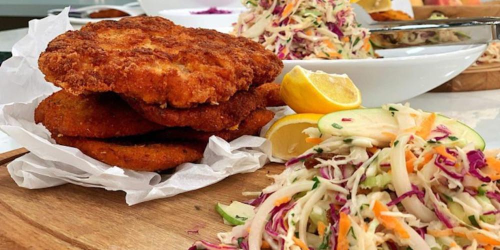 Αλατοπιπερώνουμε τα φιλέτα. Τα περνάμε ένα ένα από το αλεύρι και τα βάζουμε σε ένα πιάτο. Έπειτα τα περνάμε από το αυγό και την παρμεζάνα. Αφού τα έχουμε περάσει όλα από το αυγό και την παρμεζάνα, τα παίρνουμε ένα ένα και τα περνάμε από αυγό πάλι και τέλος από το τριμμένο ψωμί.