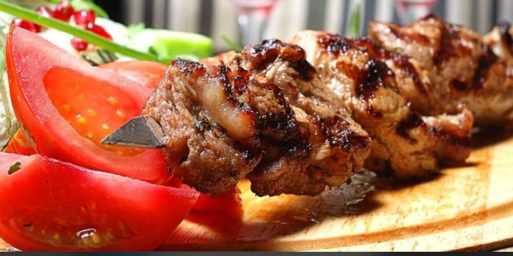 Ρίχνουμε το μίγμα στο μπολ με το χοιρινό. Καλύπτουμε με αλουμινόχαρτο και βάζουμε το μπολ στο ψυγείο για 3 ώρες. Μουλιάζουμε το ξύλινο σουβλάκι σε λίγο νερό και περνάμε τα κομμάτια του χοιρινού στο σουβλάκι. Ανάμεσα από τα κομμάτια του κρέατος, προσθέτουμε φέτες από κρεμμύδι, πιπεριά και ντομάτα.