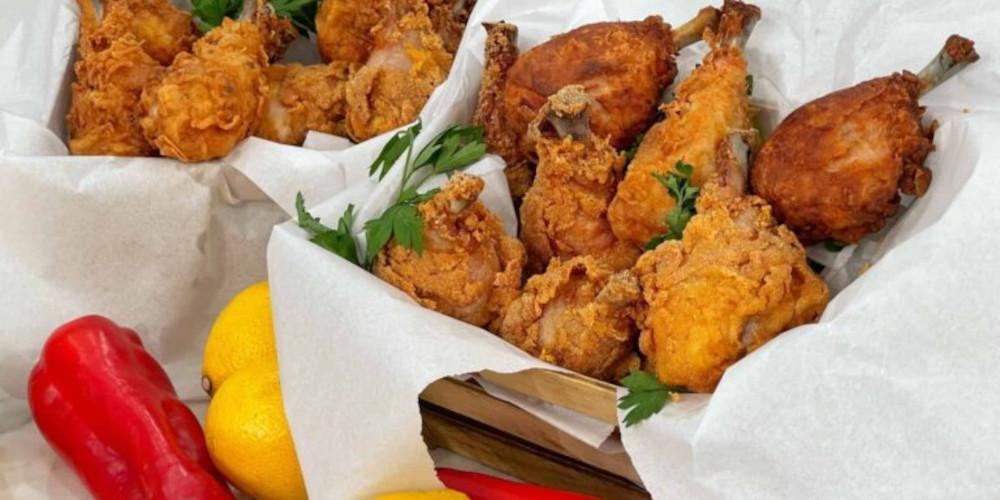 Σε ένα ταψάκι βάζουμε το αλεύρι, το κορν φλάουρ και το υπόλοιπο μείγμα μπαχαρικών, ανακατεύουμε καλά. Βάζουμε μια κατσαρόλα με καλαμποκέλαιο για να ζεσταθεί στους 140-150 βαθμούς, δεν θέλουμε να είναι καυτό το λάδι γιατί θα καεί το κοτόπουλο και δεν θα ψηθεί μέσα, ο σωστός τρόπος είναι να γίνουν 2 τηγανίσματα, ένα στους 150 βαθμούς και στη συνέχεια ένα στους 180-190.