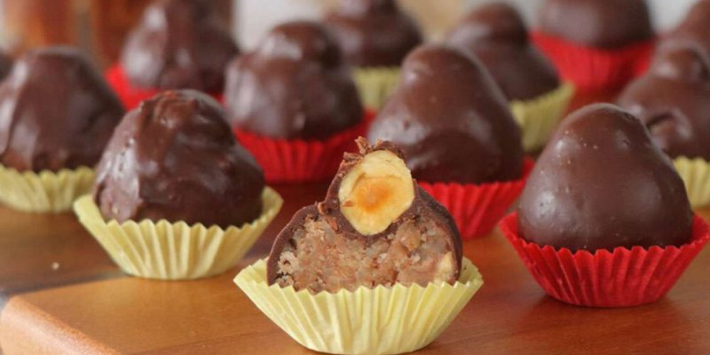 Τα τοποθετώ πάνω σε λαδόκολλα στο ταψί μέχρι να τελειώσει το μείγμα. Κόβω σε μικρότερα κομμάτια τα 180 γρ. κουβερτούρας και τα λιώνω με ½ κουταλιά βούτυρο είτε στον φούρνο μικροκυμάτων είτε σε μπέν – μαρί. Όταν λιώσει το μείγμα, παίρνω μια – μια τις μπαλίτσες που έχω πλάσει και τις ρίχνω μέσα στη σοκολάτα. Με την βοήθεια δύο πιρουνιών βγάζω τις μπαλίτσες, στραγγίζω την περίσσια σοκολάτας και τις βάζω προσεκτικά πάλι πάνω στη λαδόκολλα.