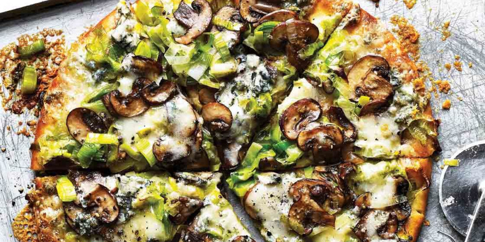 Για την πίτσα: Απλώνουμε πάνω στο ζυμάρι την κρέμα γάλακτος. Πασπαλίζουμε με την παρμεζάνα. Απλώνουμε ομοιόμορφα τις λεπτές φέτες των μανιταριών. Αλατοπιπερώνουμε. Πασπαλίζουμε με την σκόνη από το Porcini. Βάζουμε σε όλη την επιφάνεια την τριμμένη μοτσαρέλα. Τέλος, εναποθέτουμε διάσπαρτα τους κύβους της γκοργκοντζόλα. Ψήνουμε στους 250 για 15 λεπτά.