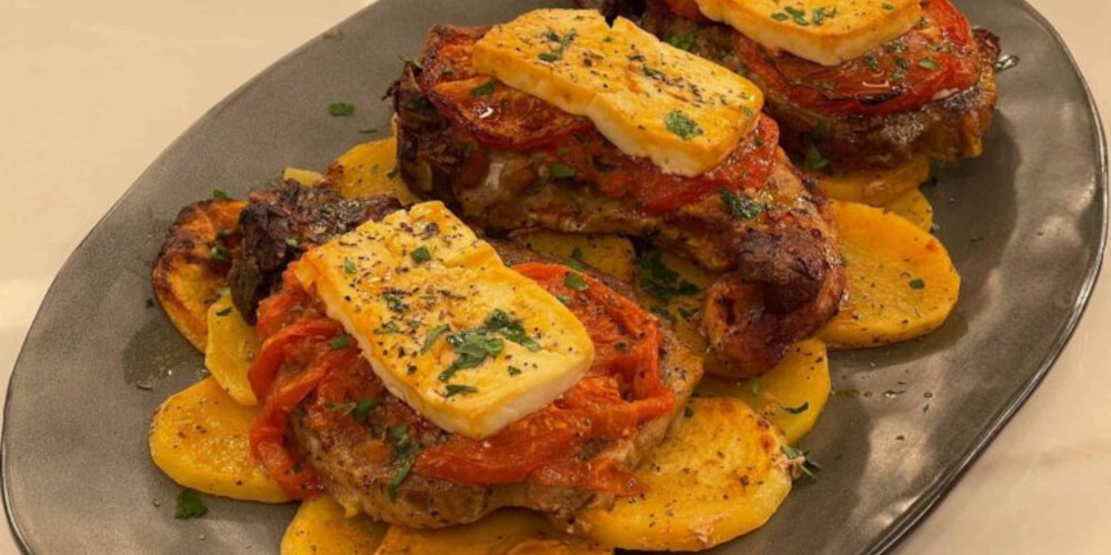 2 κιλά χοιρινές μπριζόλες λαιμού κομμένες σε φέτες των 2.5 εκατοστών