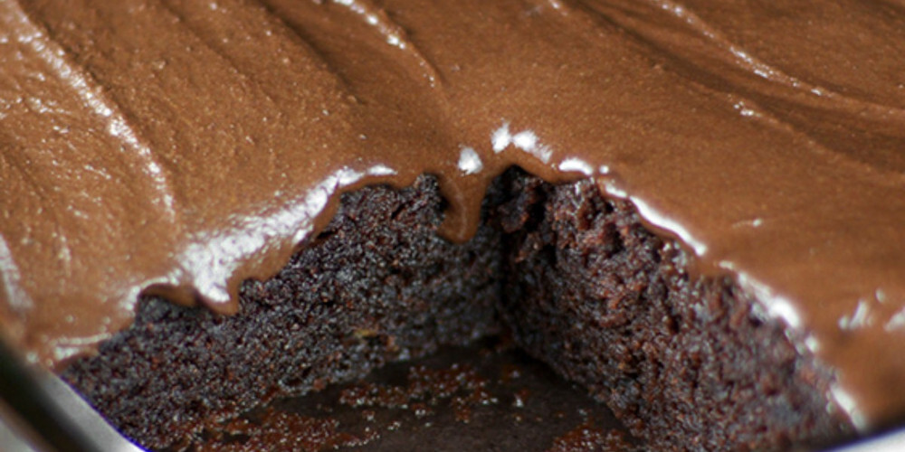 Τοποθετούμε κόσκινο στο μπολ και κοσκινίζουμε το αλεύρι, το μπέικιν πάουντερ και το κακάο. Ανακατεύουμε απαλά μέχρι να ενωθούν τα υλικά μεταξύ τους. Αδειάζουμε το μείγμα σε λαδωμένη φόρμα για κέικ ή πυρέξ. Ψήνουμε για 30 λεπτά στη μεσαία σχάρα, στον αέρα.