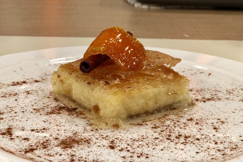Λιώνετε το βούτυρο στο φούρνο μικροκυμάτων. Χτυπάμε τα αβγά στο μίξερ με το σύρμα για 2 λεπτά και στη συνέχεια προσθέτετε το αμύγδαλο που έχετε αλέσει πολύ καλά, την άχνη, το βούτυρο και τον πουρέ απ το πορτοκάλι, χτυπάμε με το φτερό να ομογενοποιηθούν. Αλείφετε ένα ταψί 40χ30 με το βούτυρο που έχετε λιώσει για τα φύλλα. Απλώνετε σταυρωτά τα φύλλα, αφήνοντας κάθε φορά μισό φύλλο απ’έξω (αυτό θα χρησιμεύσει γιατί μετά θα κλείνει σαν φάκελος).