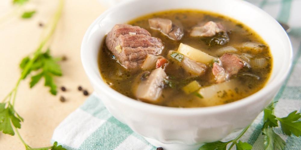 Βράζετε 1 1/2 λίτρο νερό στο οποίο έχετε προσθέσει αλάτι και ρίχνετε το κρέας. Το ξαφρίζετε καλά και όταν σταματήσει να βγάζει αφρό, προσθέτετε το λάδι, την ντομάτα, τα μανιτάρια, το κρεμμύδι και το μπαχάρι. Βράζετε 35′.