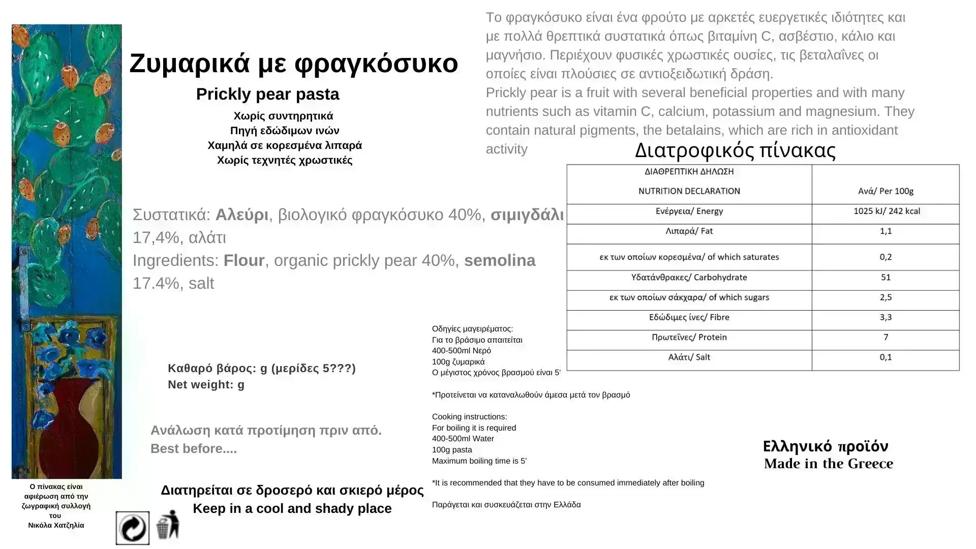 Ο γιος του, Χρήστος, ο οποίος σπούδασε τυποποίηση, μεταποίηση και εμπορία προϊόντων στο ΙΕΚ της Αμερικανικής Γεωργικής Σχολής, σκέφτηκε κάτι αρκετά πρωτοποριακό! «Πρότεινε να εντάξουμε το φραγκόσυκο στα παραδοσιακά ζυμαρικά της Ελλάδας, δηλαδή τις χυλοπίτες και τον τραχανά. Η ιδέα μου άρεσε και τη δουλέψαμε μαζί. Κάναμε τις πρώτες δοκιμές και το προϊόν βγήκε εξαιρετικό», πρόσθεσε.
