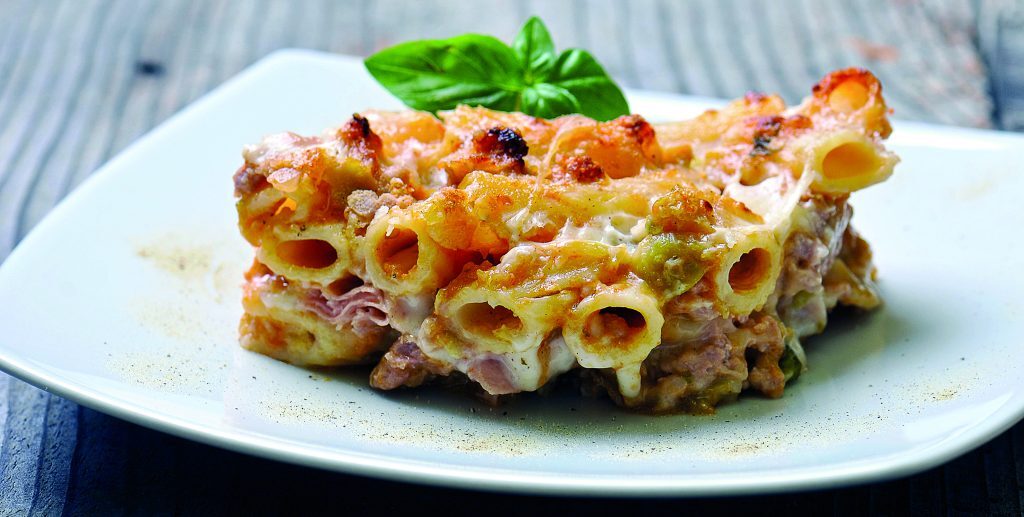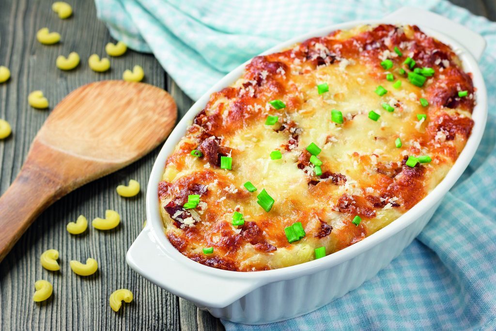 Με ζυμαρικά, τυριά, μπέικον & κρέμα γάλακτος