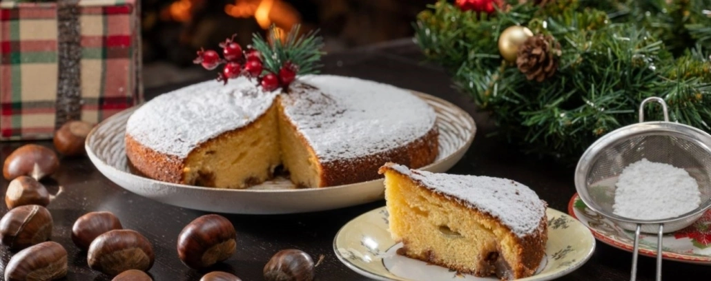 Ανακατεύετε σε ένα μπολάκι την κρέμα κάστανου με το κονιάκ. Βουτυρώνετε και αλευρώνετε μια στρογγυλή φόρμα και ρίχνετε τη μισή ποσότητα από το μείγμα, ρίχνετε σε διάφορα σημεία τη κρέμα κάστανου και πάνω το υπόλοιπο μείγμα.