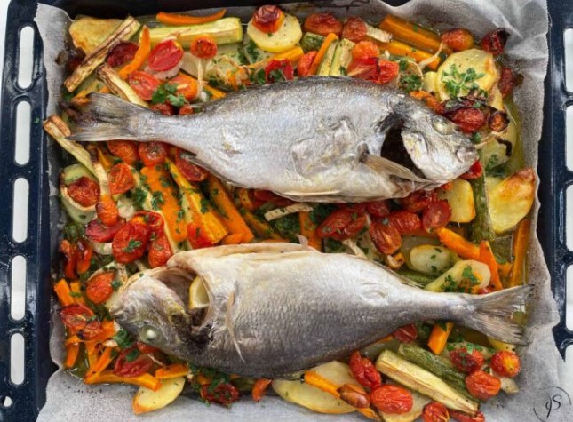 Τσιπούρα στο φούρνο με ολόφρεσκα λαχανικά! Μια από τις αγαπημένες μου συνταγές για τα ελαφριά καλοκαιρινά φαγητά! Η τσιπούρα είναι ψητή, ελαφριά και μόνο με λαχανικά για εσένα που προσέχεις!
