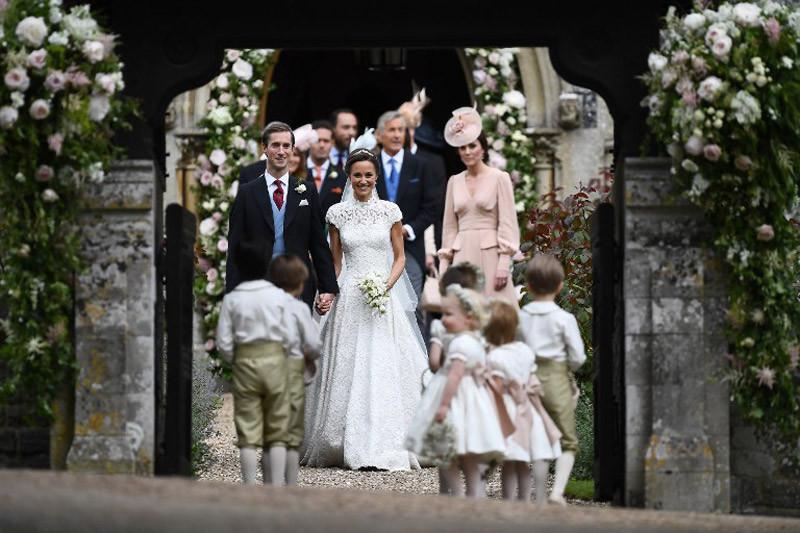 Το δαντελένιο νυφικό της κέρδικσε όλες τις εντυπώσεις και η η αδερφή της, Kέιτ Μίντλετον ήταν έτοιμη να βοηθήσει κρατώντας την ουρά του, όσο η Πίπα κατευθυνόταν στο εσωτερικό του ναού.