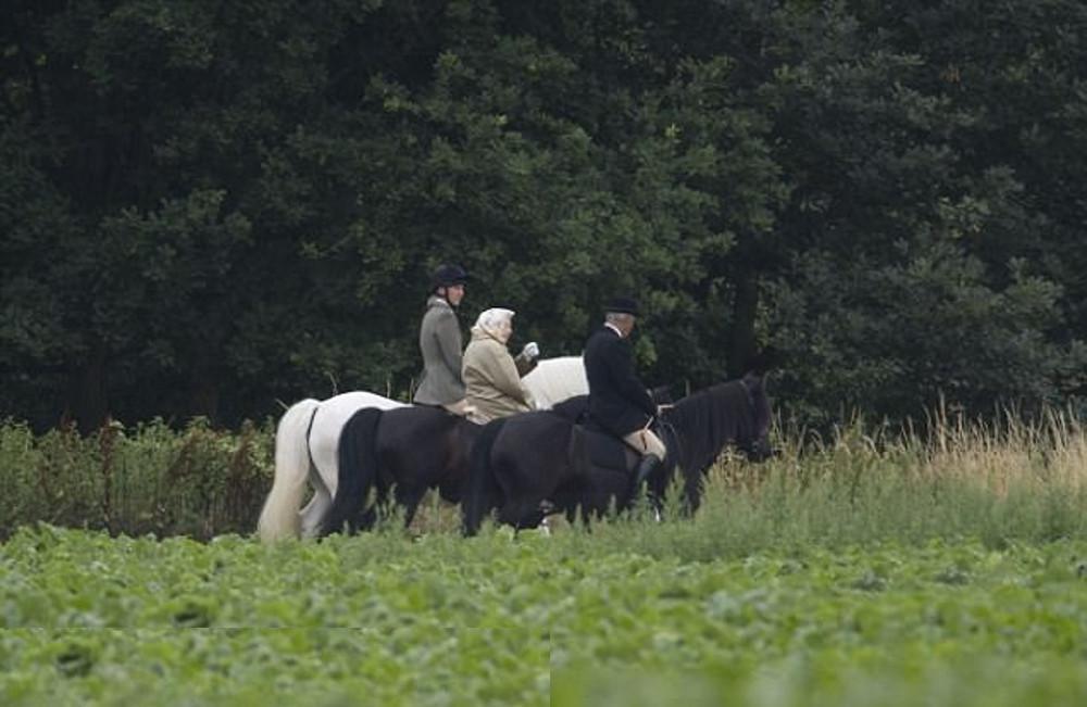 Η μονάρχης απόλαυσε λίγη ώρα στην ύπαιθρο, κάνοντας ένα από τα αγαπημένα της χόμπι. Άλλωστε κάνει ιππασία επί οκτώ και πλέον δεκαετίες, από την ηλικία των τεσσάρων ετών, όταν απέκτησε την Πέγκι, το πρώτο της Σέτλαντ πόνι. Παρότι τον τελευταίο καιρό η βασίλισσα ιππεύει λιγότερο, επισκέπτεται συχνά τους στάβλους για να δει τα αγαπημένα της άλογα.