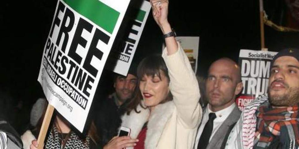 Μία τέτοια διαδήλωση έγινε και έξω από την πρεσβεία της Αμερικής στο Λονδίνο, την ώρα όμως της διαδήλωσης το σούπερ μόντελ Μπέλα Χαντίντι βρίσκονταν σε ένα πάρτι που λάμβανε χώρα στην Oxford Street.