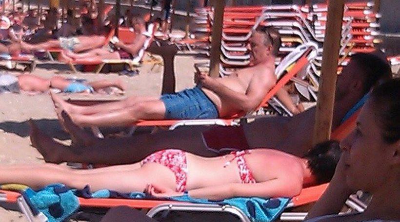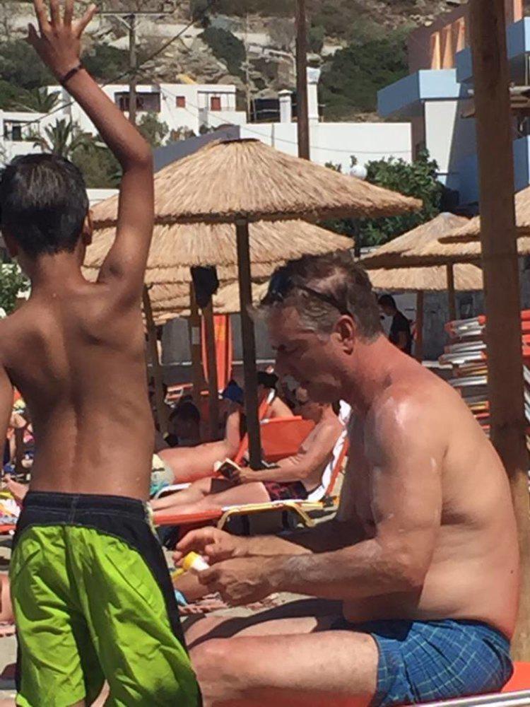 Η οικογένεια απαθανατίστηκε σε παραλία της Λυγαριάς να απολαμβάνει τον ήλιο και τη θάλασσα και έδειχνε να περνάει ευχάριστες στιγμές στο νησί.