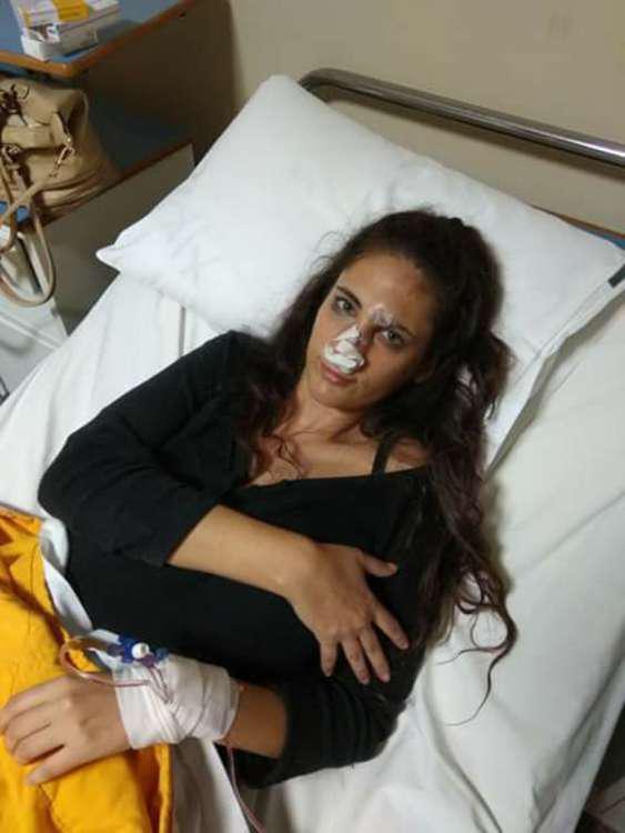 Το μοντέλο νοσηλεύεται στο Νοσοκομείο Ναυπλίου με ράμματα πάνω από τα μάτια και τη μύτη.