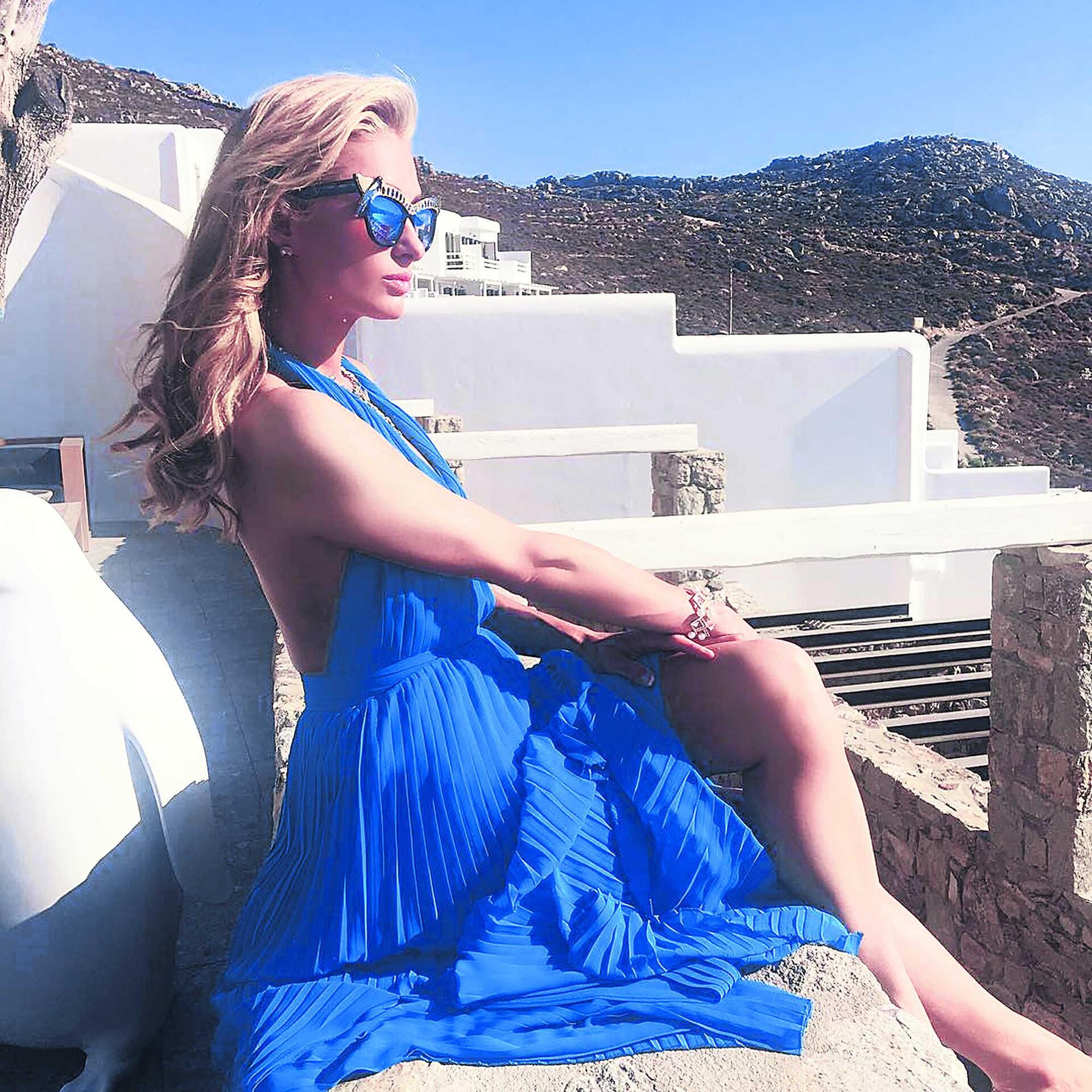 Η ίδια έφτασε στο νησί των ανέμων την περασμένη Παρασκευή με το ιδιωτικό της τζετ και διέμεινε σε πολυτελές ξενοδοχείο κοντά στην παραλία Ελιά, όπου έγινε και η δεξίωση του χλιδάτου γάμου. Εκεί φαίνεται πως γνώρισε και τον Ηλία Ψινάκη, με τον οποίο έβγαλαν και μια selfie μαζί.