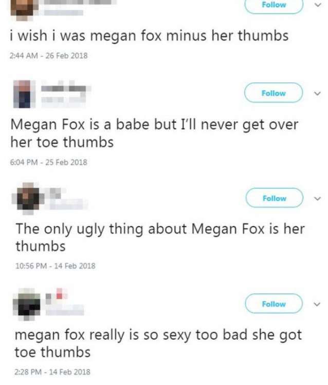 «Πατημένους», «κοντόχοντρους» και άλλα τέτοια «όμορφα» σχόλια προσάπτουν στους αντίχειρες της σταρ, λέγοντας πως μοιάζουν περισσότερο με δαχτυλάκια ποδιών παρά χεριών!