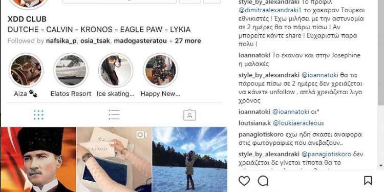 Η μελαχρινή καλλονή έχασε τη δυνατότητα πρόσβασης στον προσωπικό της λογαριασμό στο Instagram ενώ πριν από λίγα λεπτά η εικόνα του προφίλ της αντικαταστάθηκε με μια φωτογραφία του Κεμάλ Ατατούρκ.