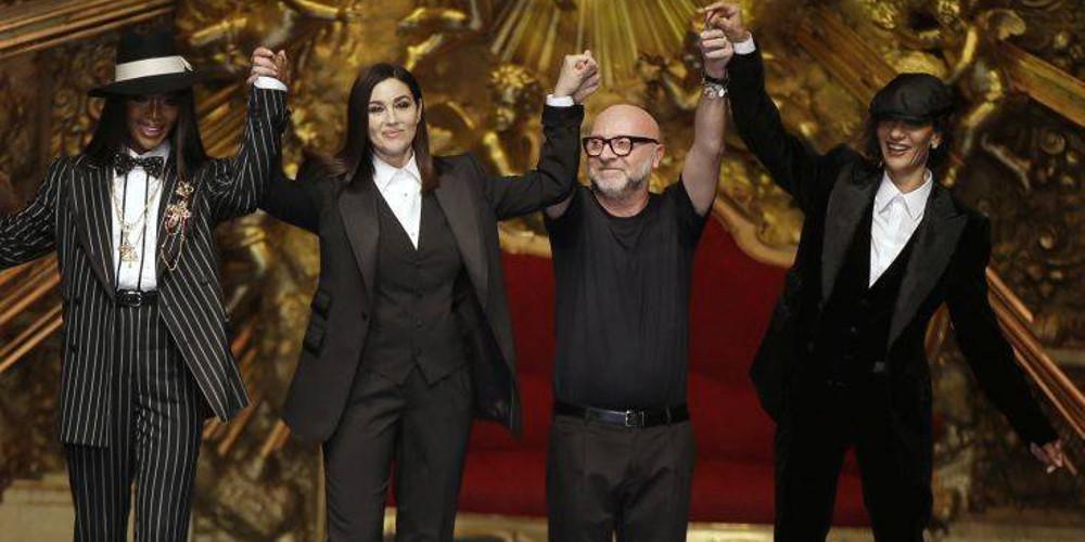 Όμως, η πρώτη έκπληξη που επιφύλαξαν οι οργανωτές ήταν η εμφάνιση, στην έναρξη του σόου, της Μόνικας Μπελούτσι, που ανέβηκε για τελευταία φορά στην πασαρέλα το 1992, επίσης για τους Dolce&Gabbana. Η πανέμορφη ηθοποιός φόρεσε μαύρο κοστούμι.