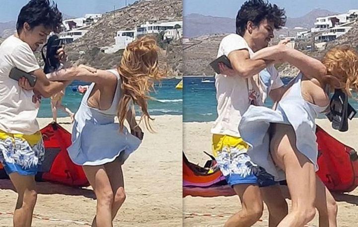 Το ζευγάρι που πριν λίγες μέρες είχε επισκευτεί την Μύκονο για διακοπές απαθανατίστηκε την ώρα που τσακωνόταν σε παραλία του νησιού.