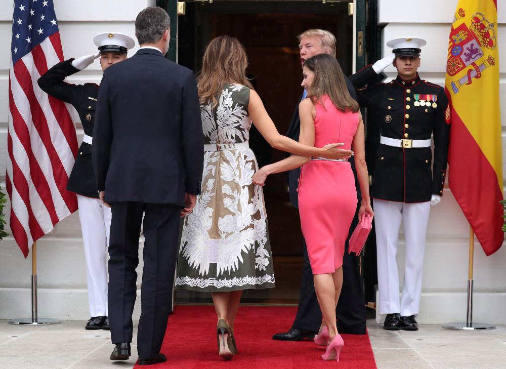 Η βασίλισσα Λετίτσια της Ισπανίας επέλεξε ένα στενό ροζ φόρεμ α του Michael Kors. Η Μελάνια Τραμπ από την άλλη διάλεξε ένα φόρεμα Valentino με pattern σε λευκό και πράσινο χρώμα.