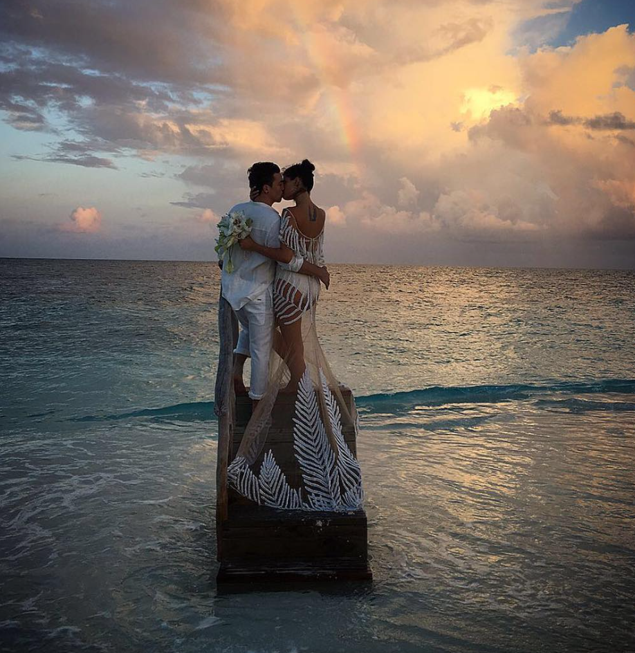 Η καλλονή από τη Βραζιλία ανέβασε φωτογραφίες από την τελετή στον προσωπικό της λογαριασμό στο Instagram και ξετρέλανε τους φαν τόσο με το αποκαλυπτικό νυφικό της όσο και με το μαγευτικό τοπίο.