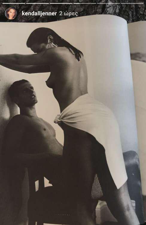 Ας μην ασχολούμαστε άλλο με αυτό. Ας επικεντρωθούμε στην ουσία. Στο πλαίσιο κάποιας επαγγελματικής φωτογράφισης, η Κένταλ Τζένερ τύλιξε μια πετσέτα γύρω από το κάτω μέρος του σώματος, όπου βέβαια φαίνεται ο αριστερός γλουτός. Το πάνω μέρος έμεινε εντελώς ακάλυπτο και το στήθος της αποκαλύπτεται στον άντρα που στέκεται καθιστός μπροστά της, αλλά και σε όλους εμάς.