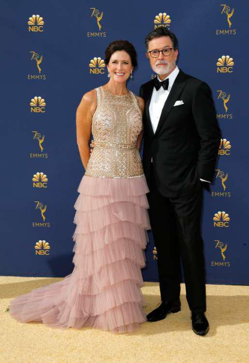 Ο Στίβεν Κολμπέρ λανσάρει εσχάτως αυτή τη λευκή γενειάδα, η οποία όμως δεν τον βοήθησε να κερδίσει τον Τζον Όλιβερ. Εδώ με τη γυναίκα του.
