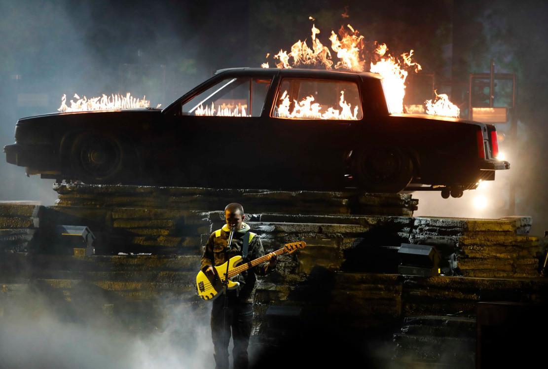 Οι 21 Pilot έπαιξαν επίσης με τη φωτιά, με ένα αυτοκίνητο να καίγεται καθώς ο Τάιλερ Τζόζεφ τραγουδούσε το Stressed Out.