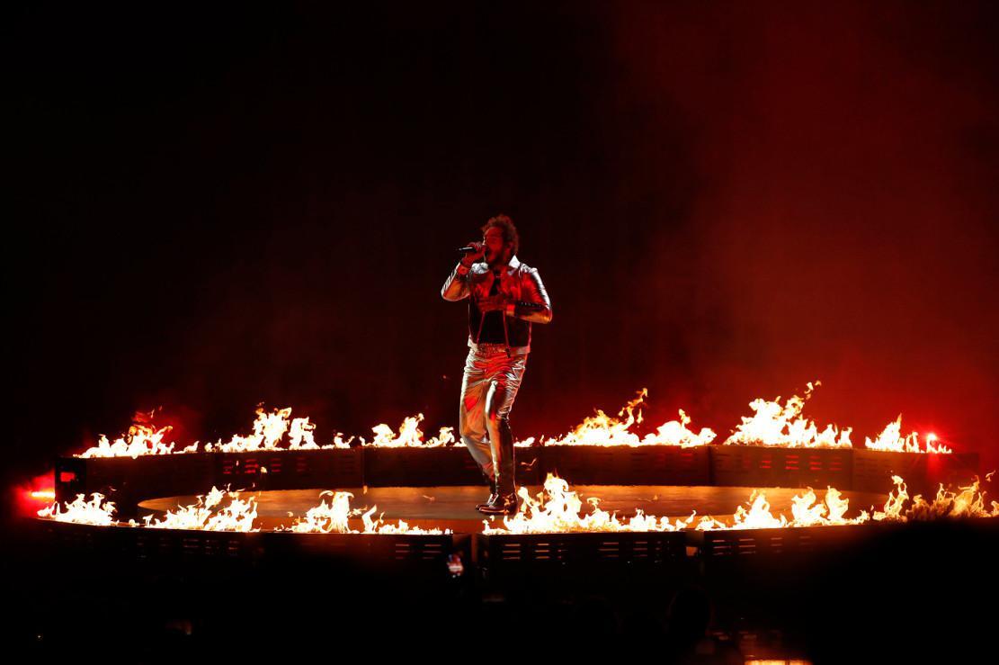 Όπως και η εμφάνιση του στη σκηνή, όπου μπήκε σε έναν κύκλο φωτιάς σαν σε τσίρκο.
