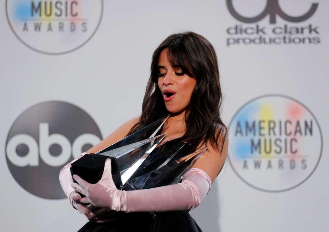 Δυσκολεύτηκε λίγο να βολέψει τα 4 βραβεία της η Καμίλα Καμπέγιο, αλλά τα κατάφερε.