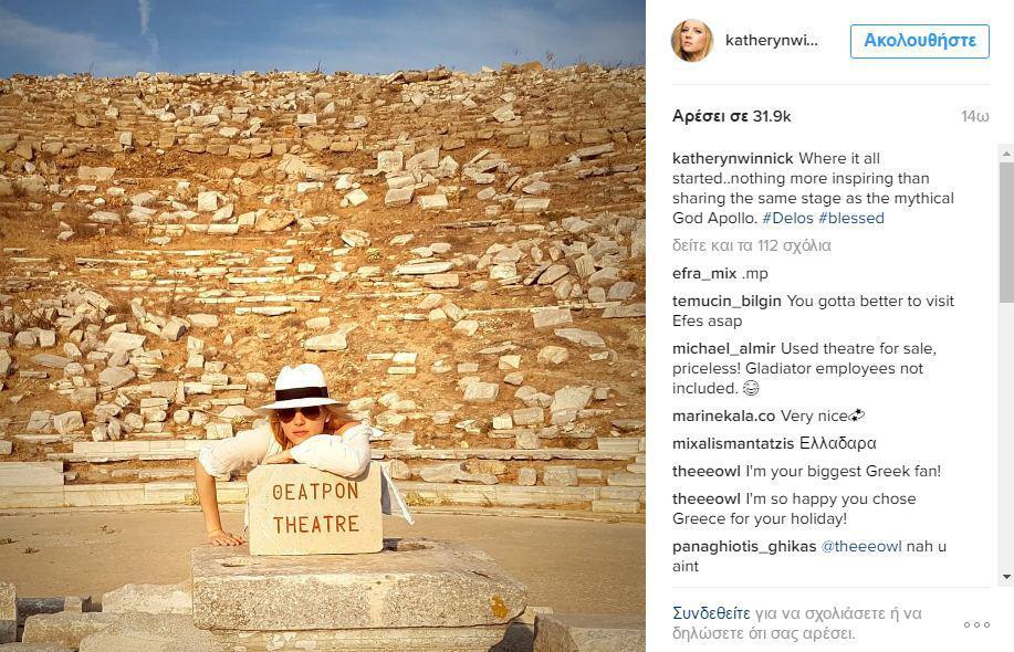 Η διάσημη ηθοποιός επισκέφθηκε και τη Δήλο, πριν φύγει, ανεβάζοντας ένα όμορφο στιγμιότυπο.