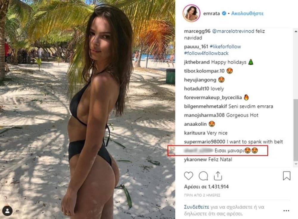 Κάτω από τις φωτογραφίες που ανέβασε επικρατεί ένας “πανικός” με εγκωμιαστικά σχόλια, κομπλιμέντα, σύμβολα με καρδούλες και φωτιές, αλλά και ευχές για Καλά Χριστούγεννα. Ανάμεσά τους και το σχόλιο ενός Έλληνα, ο οποίος φανερά ενθουσιασμένος της άφησε ένα σχόλιο στα ελληνικά, που ίσως η Έμιλυ να μην καταλάβει και ποτέ.