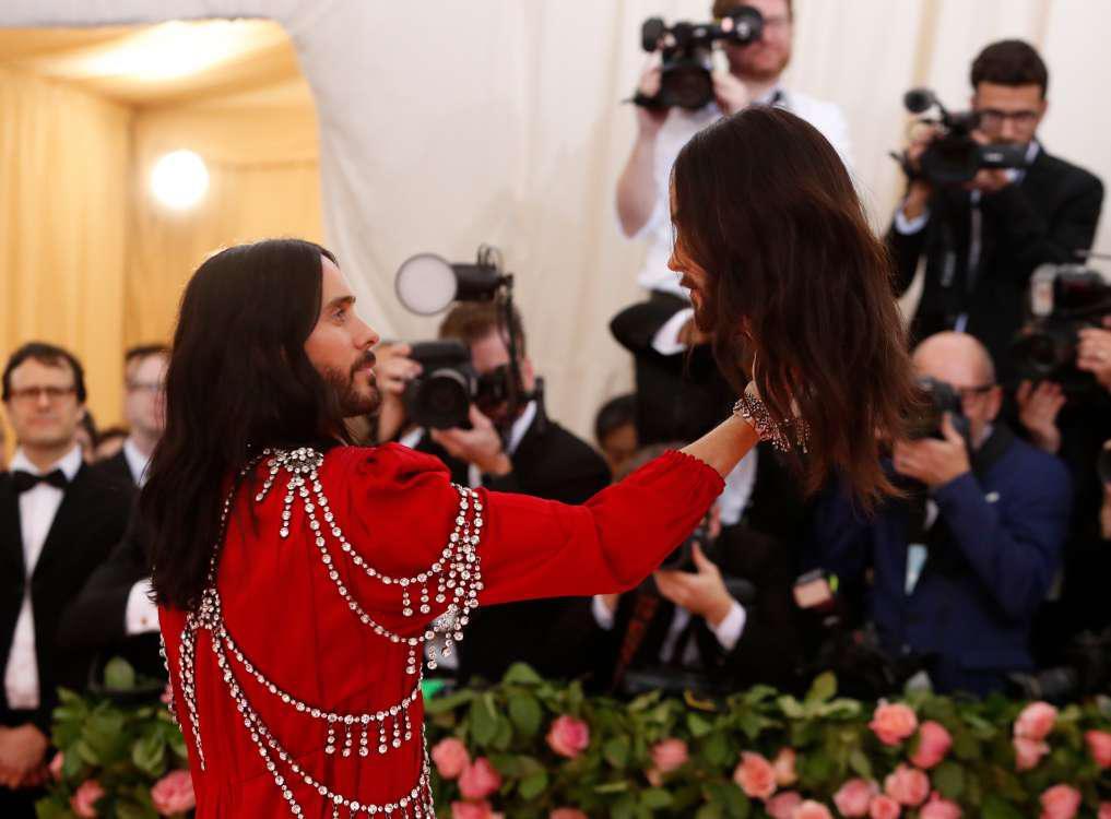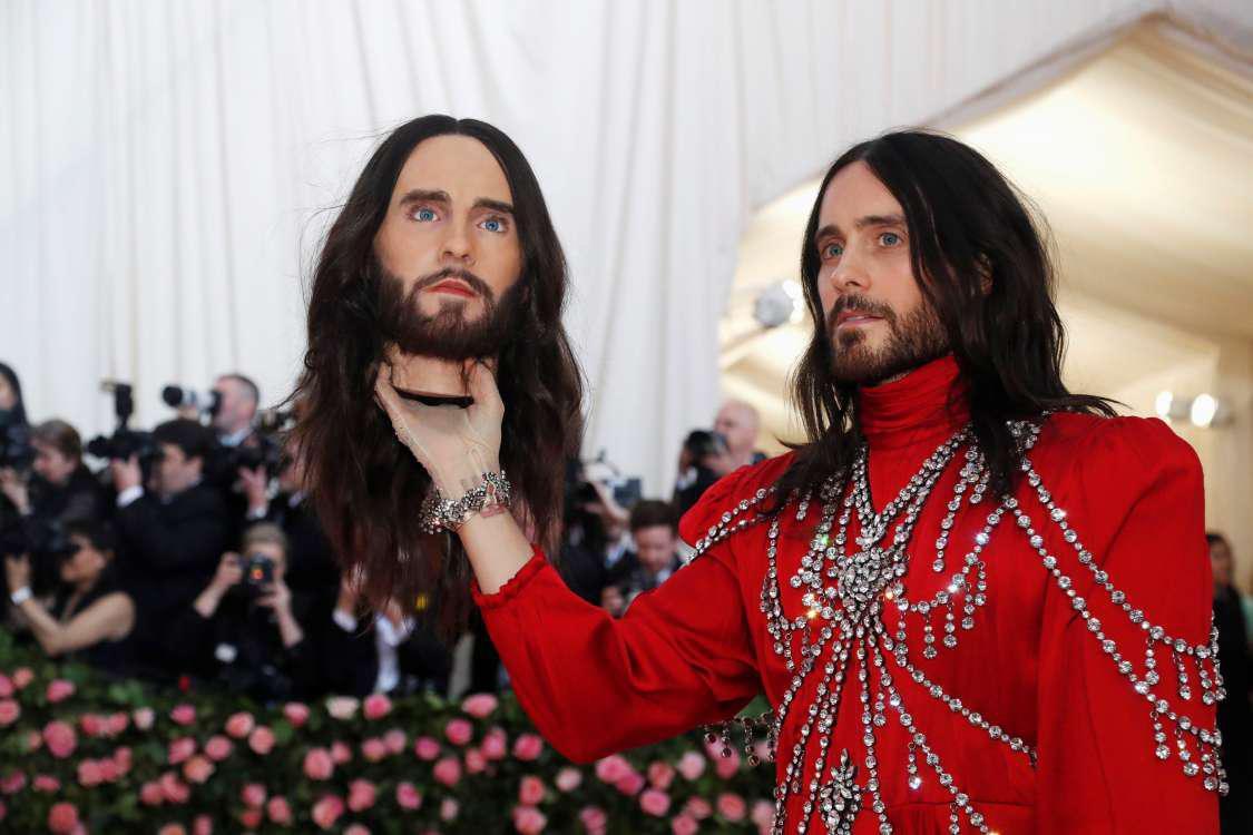 Κι ο Τζάρεντ Λέτο ήταν απόλυτα εναρμονισμένος με το κλίμα. Το ρούχο του κεντημένο με κοσμήματα και πολύτιμα πετράδια από τον Οίκο Gucci. Στο χέρι του μια ρέπλικα του κεφαλιού του. Εμπνευσμένος από ένα fashion show του Gucci τον περασμένο Σεπτέμβριο για την κολεξιόν Φθινόπωρο-Χειμώνας 2018, ο Λέτο έγινε αντικείμενο συζήτησης περισσότερο απ΄όλους στο Met Gala.