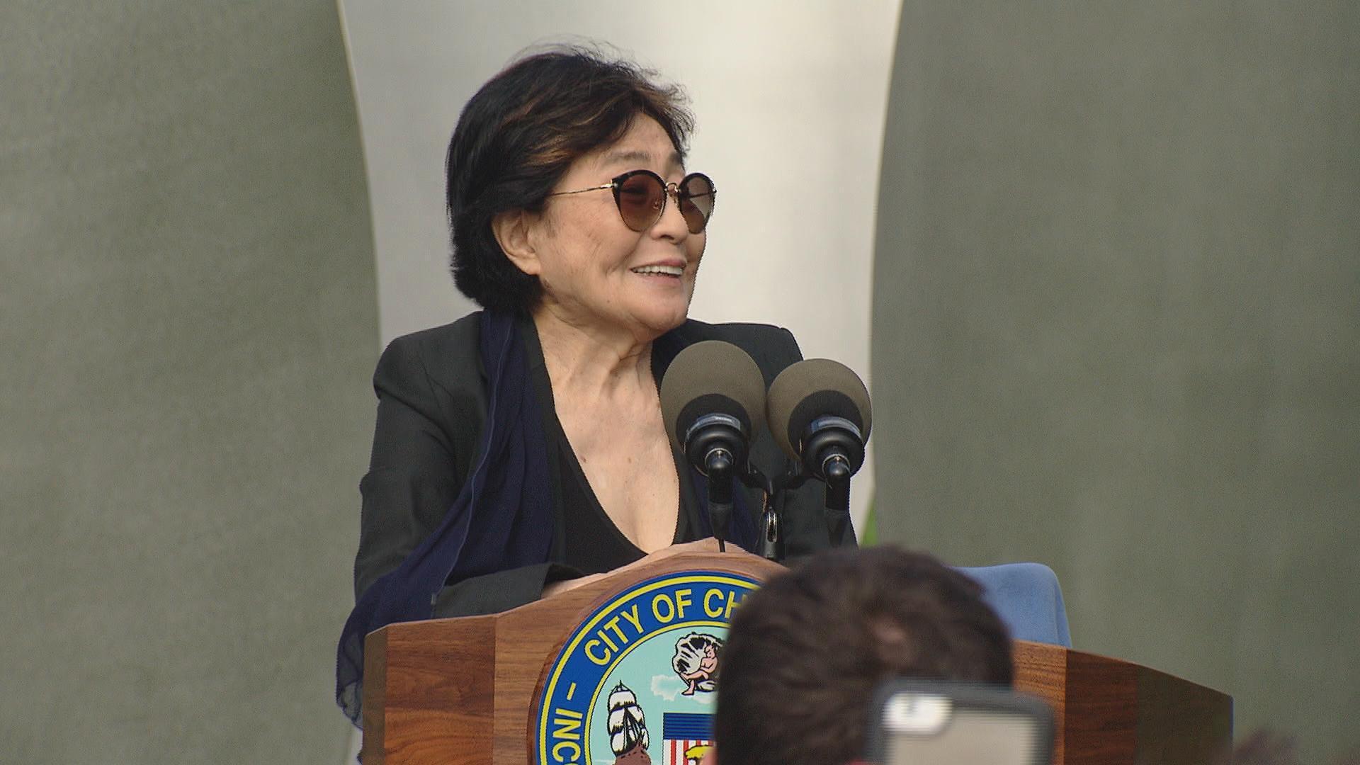Η 83χρονη Όνο –η οποία εμπνεύστηκε το τελευταίο τραγούδι που συνέθεσε με τον Τζον Λένον, το “Walking on Thin Ice”, από μια διαμονή του ζεύγους στο Σικάγο– δήλωσε κατά τη διάρκεια της εκδήλωσης στο μουσείο ότι νιώθει “πολύ συγκινημένη”, “δεν περίμενα ποτέ κάτι τέτοιο”, τόνισε.