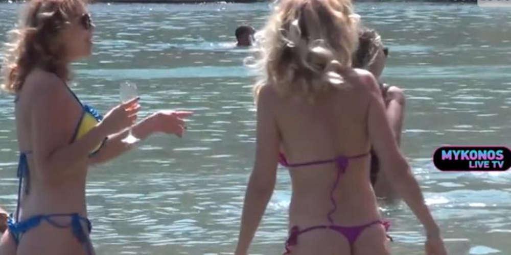 Δύο γυναίκες από την Ρωσία αιχμαλώτισαν την προσοχή των λουομένων και την κάμερα του Mykonos Live TV όταν εμφανίστηκαν στην Ψαρρού φορώντας άκρως αποκαλυπτικά μπικίνι, ενώ τα μαλλιά τους ήταν λες και βγήκαν από το κομμωτήριο!