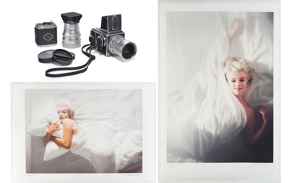 Αυτή η Hasselblad 500C, η τελευταία κάμερα που αποτύπωσε, επαγγελματικά, την Μέριλιν, δύο φακοί Carl Zeiss (ένας 50mm κι ένας 150mm), δύο εκτυπώσεις limited edition σε διαστάσεις 40 x 60 φωτογραφιών αρχείου – της «Marilyn» (Hugging Pillow) και της «Marilyn (Overhead)» – και δύο παλιά τεύχη του περιοδικού, όλη αυτή η συλλογή αντικειμένων δημοπρατείται στα τέλη Οκτωβρίου και εκτιμάται ότι θα πιάσει 200.000 με 300.000 δολάρια!